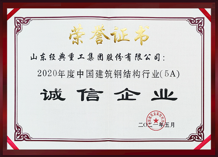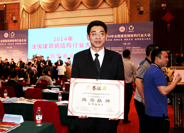 經(jīng)典建設(shè)公司被授予2014-2016年中國建筑鋼結(jié)構(gòu)行業(yè)推薦品牌信譽AAA企業(yè)。