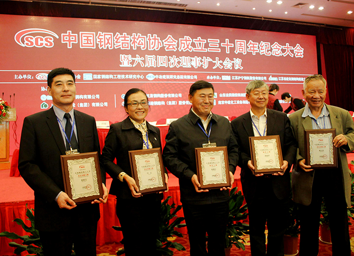 參加中國鋼結(jié)構(gòu)協(xié)會成立三十周年紀念大會當(dāng)選常務(wù)理事單位,榮獲首批全國鋼結(jié)構(gòu)行業(yè)AAA級信用企業(yè)、中國鋼結(jié)構(gòu)行業(yè)杰出貢獻人物、2014年度鋼結(jié)構(gòu)杰出人才獎。
