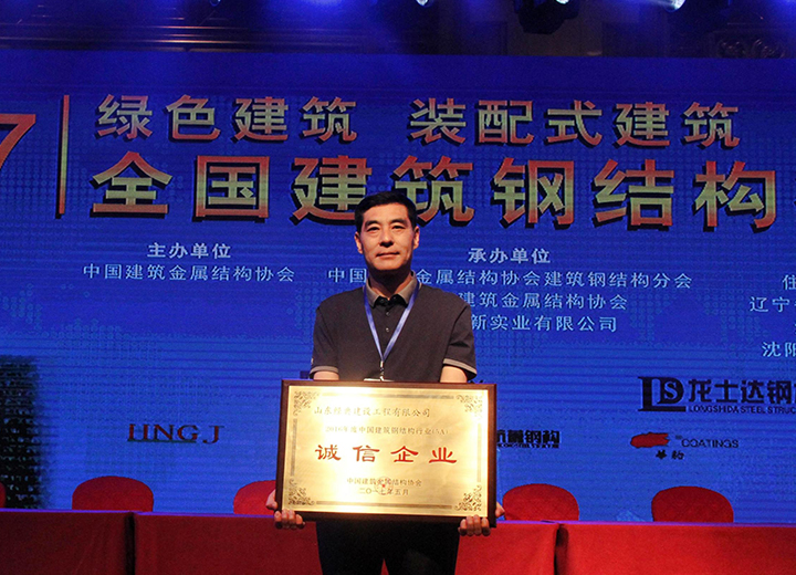公司榮獲2016年度中國建筑鋼結(jié)構(gòu)行業(yè)(5A)誠信企業(yè)稱號。