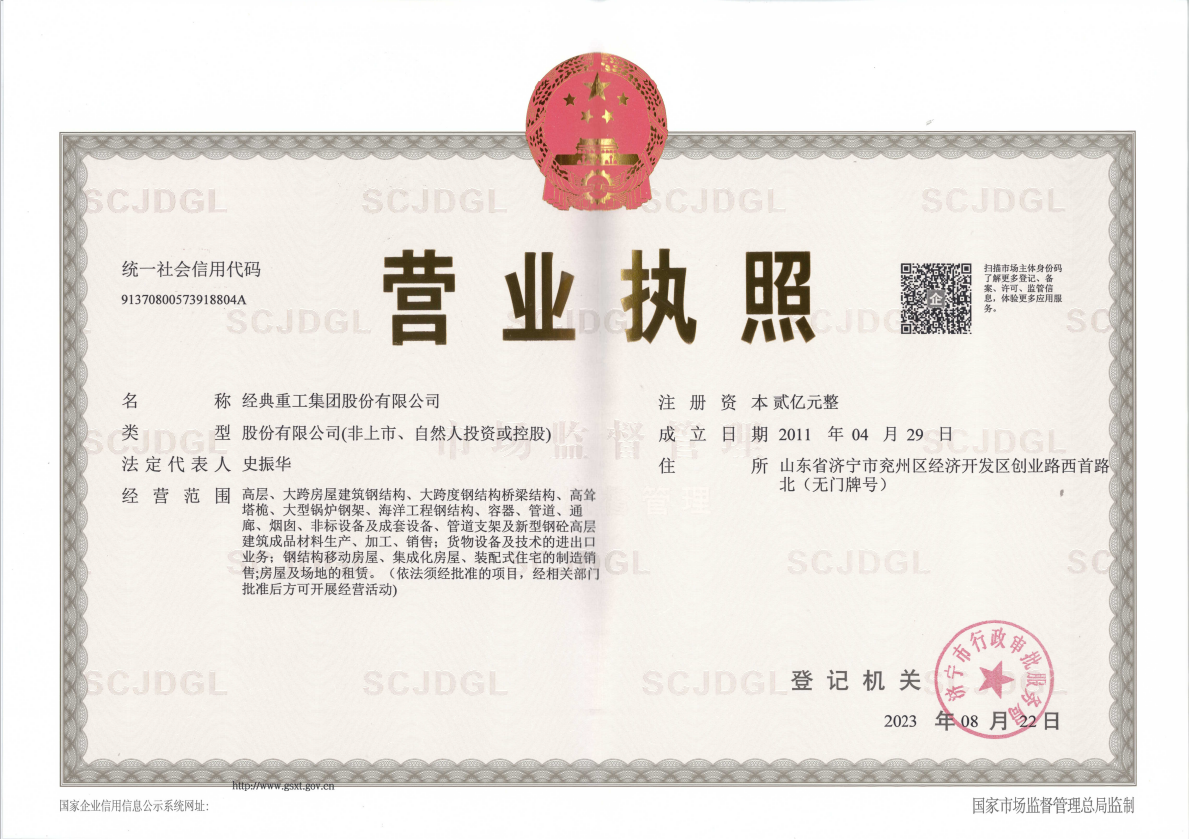 取得中國鋼結(jié)構(gòu)制造特級資質(zhì)。