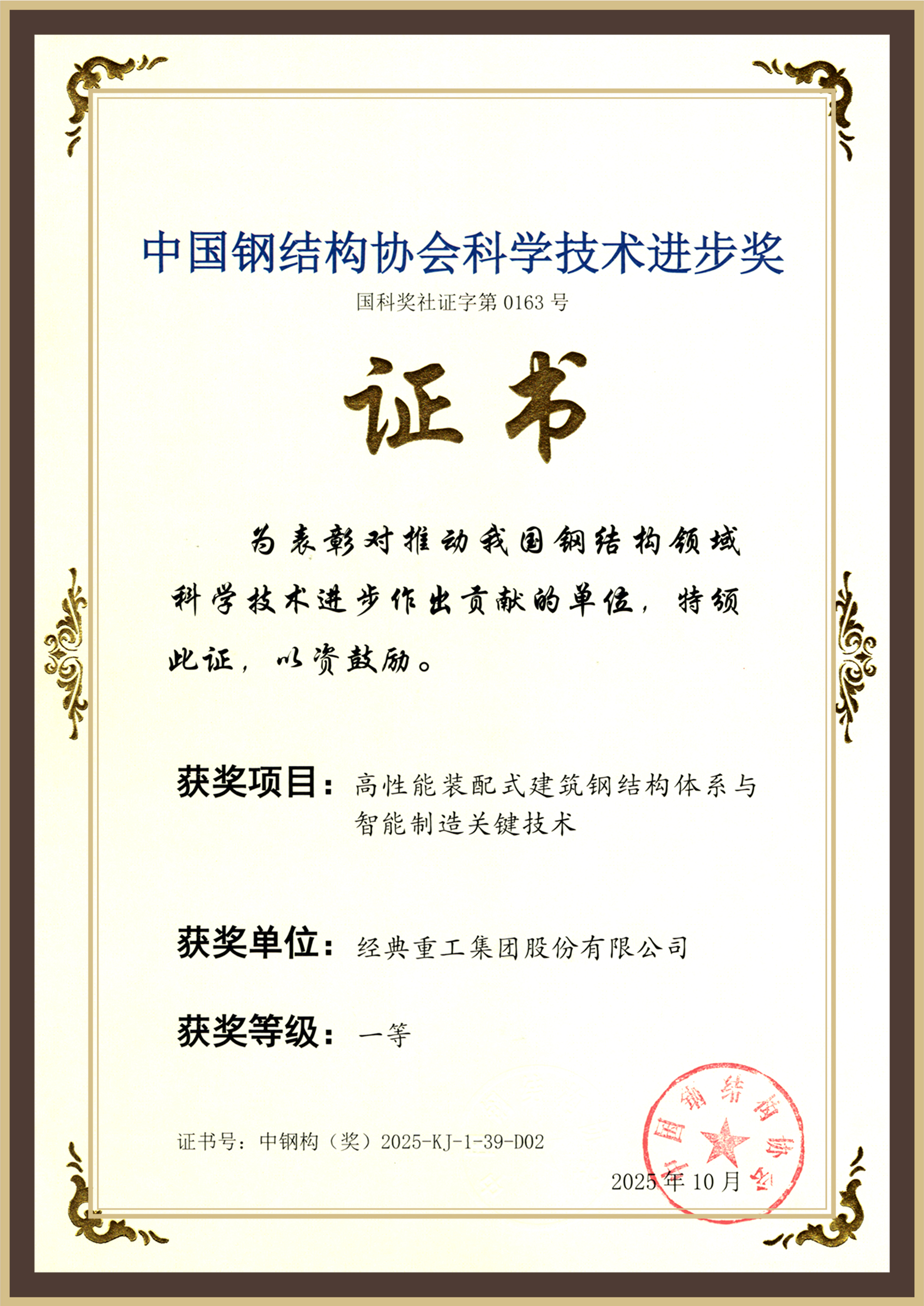 經(jīng)典集團在中國鋼結(jié)構(gòu)協(xié)會成立四十周年紀念大會上榮膺“卓越貢獻獎”,彰顯卓越貢獻與影響力。