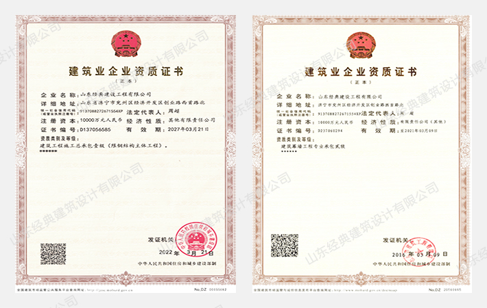 山東經典建設工程有限公司始建于2001年,經典集團全資子公司。位于古九州之一的兗州境內,在傳承中華民族傳統建筑工藝的基礎上經過不斷的創新發展,公司現已具備承建現代城市綜合建設、公用設施、大型鋼結構工業廠房、鋼框架結構辦公、商務、住宅等多種工程的承建能力。